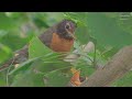 A couple of American Robin decided to build their nest, in a tree Ginkgo Biloba on the front of our house. I present you live the beginning of brooding, then the hatching and education, as well as the feeding of the little ones by the parents.
